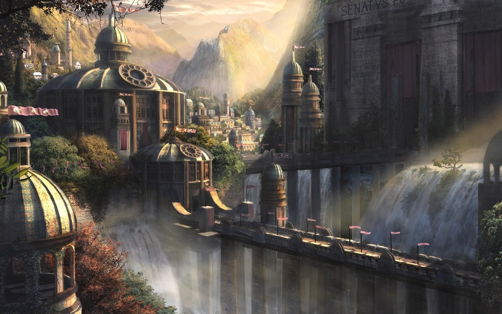 Beautiful Fantasy Palace Lake and Waterfall - 2560x1600