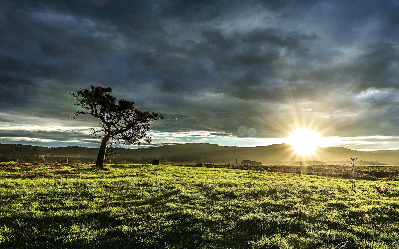 Beautiful Single Tree in Green Field and Sunrays - 1920x1200