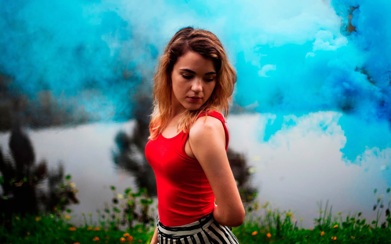 Beautiful Young Sad Girl in Red Dress - 2560x1600