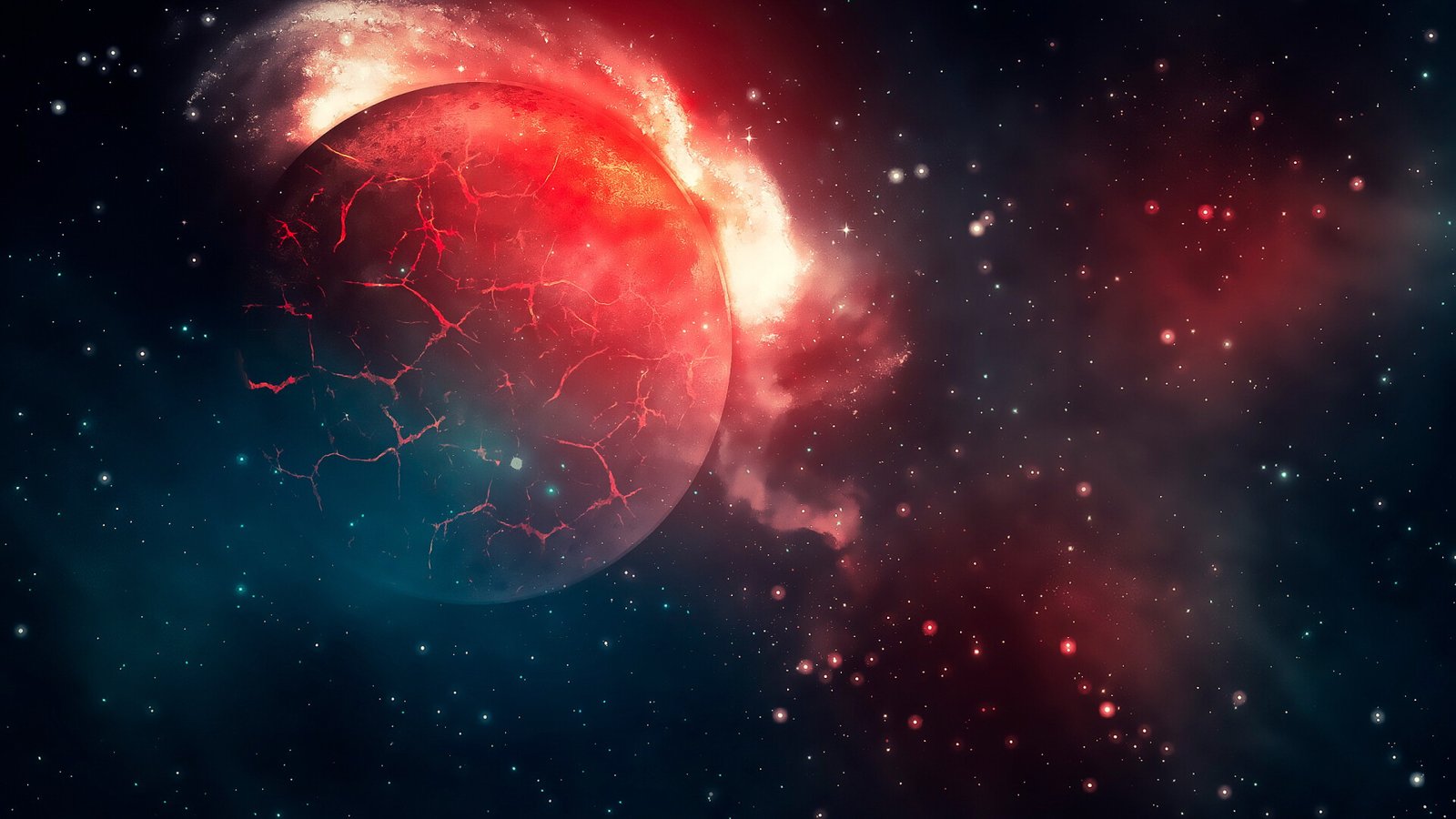 Big Red Planet with Fire and Red Galaxy - 1920x1080 (1080p)