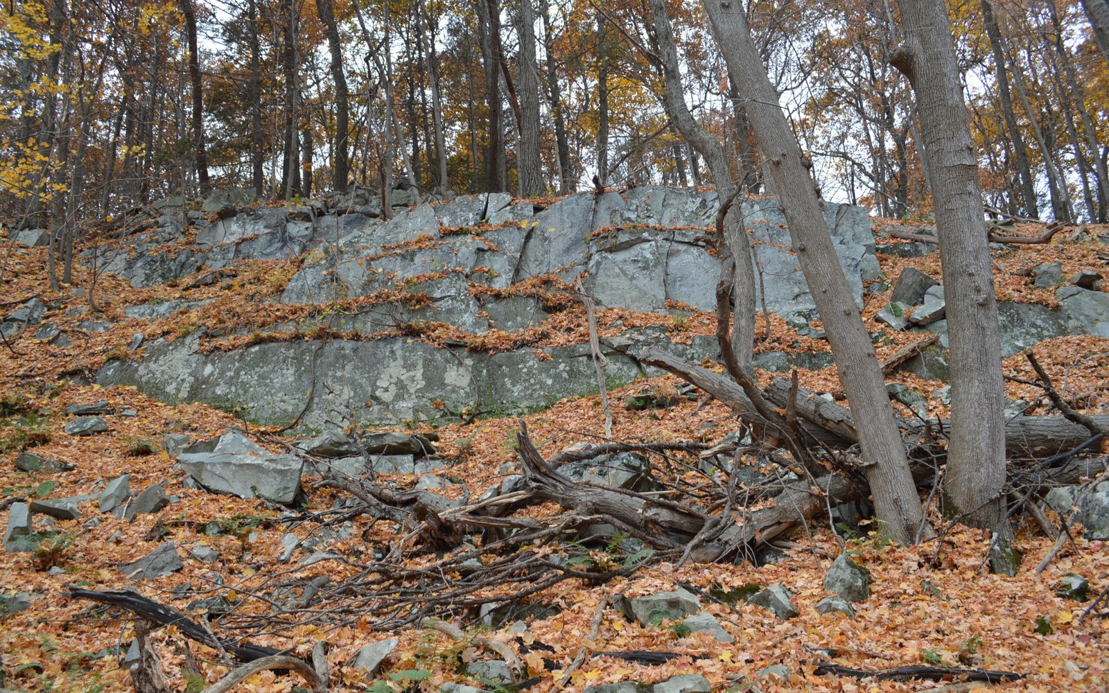 Black Stone Wall in the Autumn Forest - 2560x1600