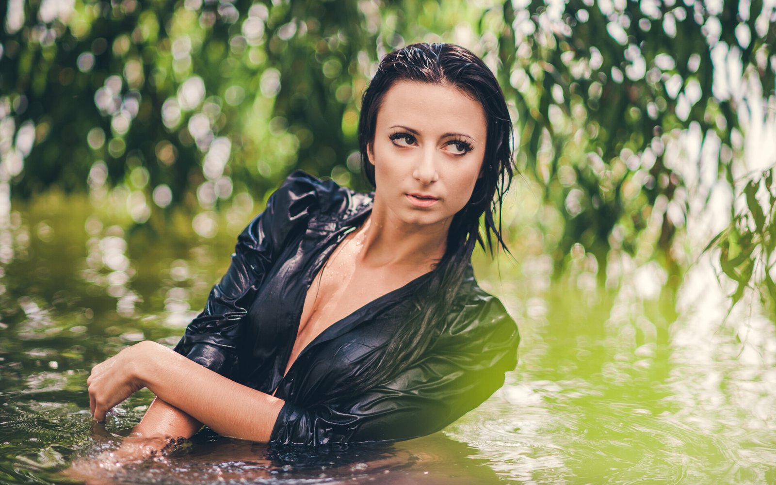 Brunette Girl in the Water - 1920x1200