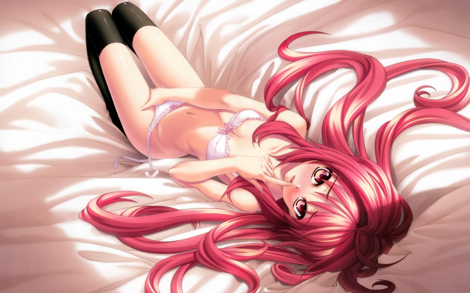 Cute Teen Girl with Red Hair and Perfect Body Black Pantyhose - 2560x1600