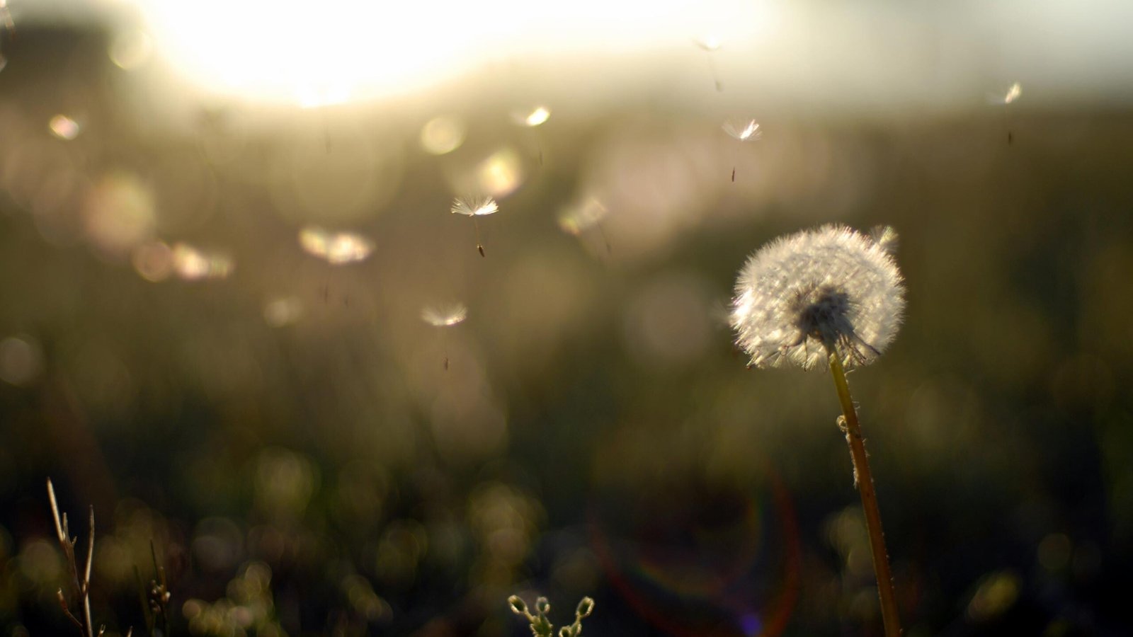 Dandelion in the Field Close Up and Green Grass - 2560x1440