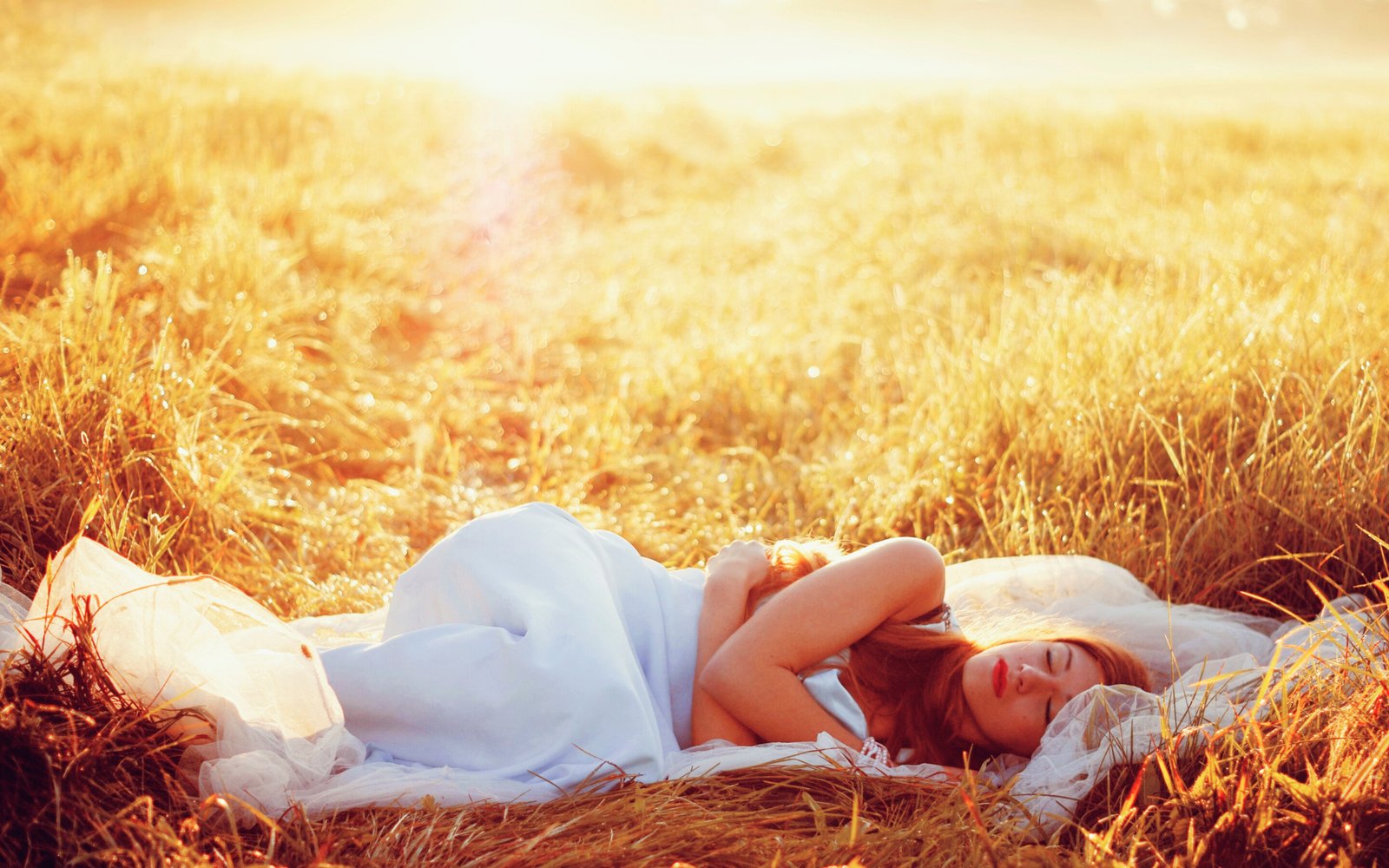 Girl Sleeping on the Field - 2880x1800