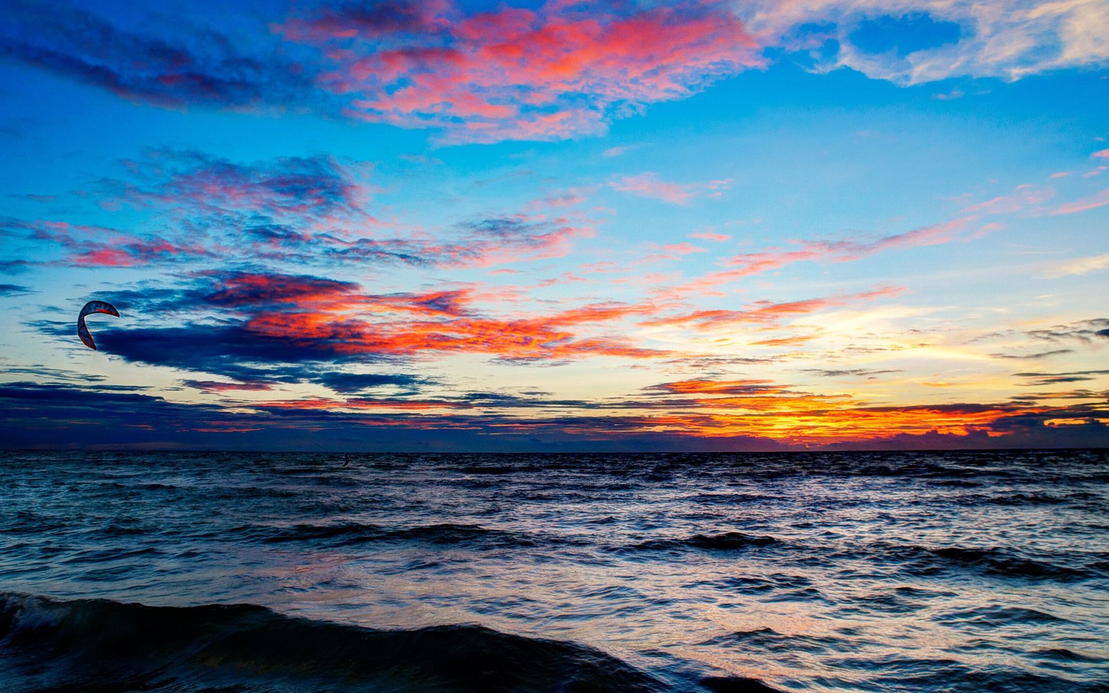 Kiteboarding on Sunset Waves on the Sea - 2560x1600