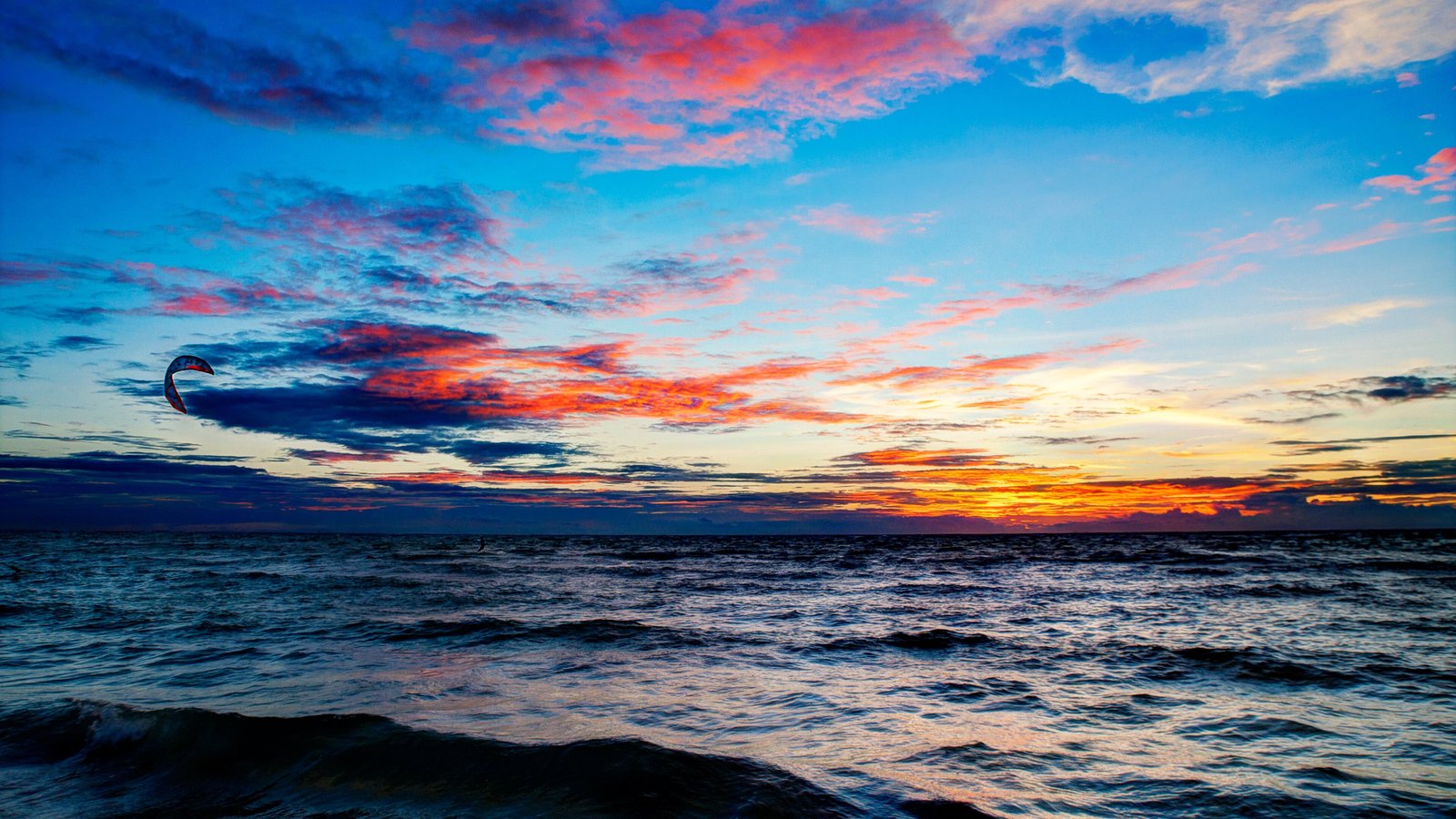 Kiteboarding on Sunset Waves on the Sea - 3840x2160