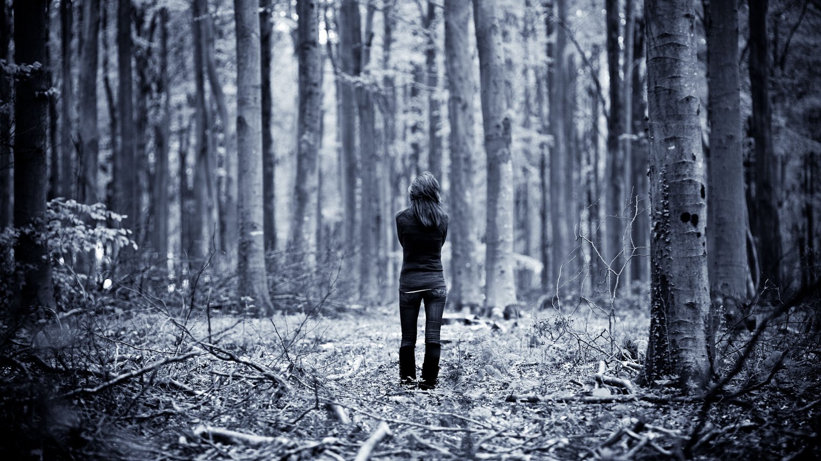 Lonely Girl in the Forest - 2560x1440