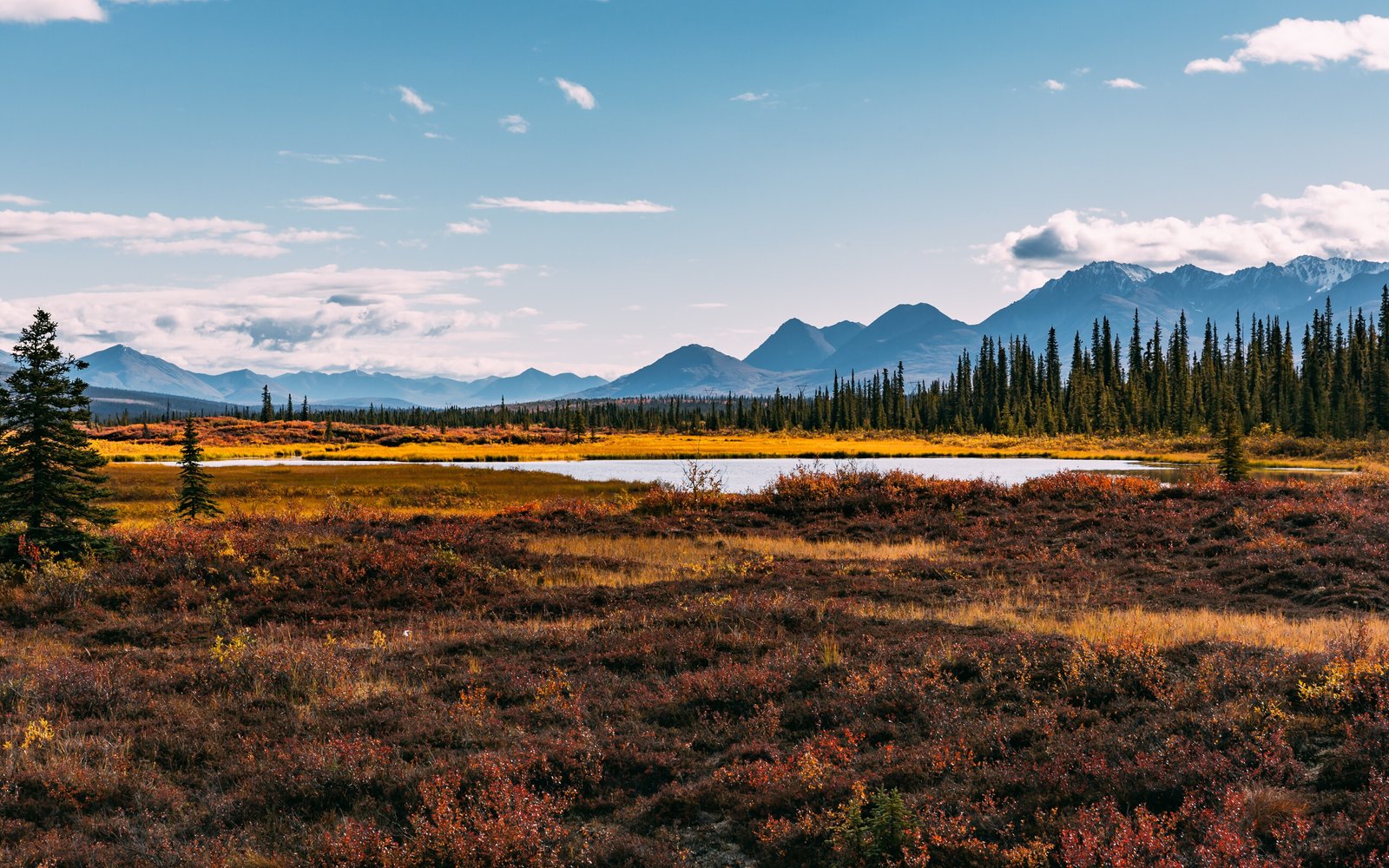 Meadow Trees River and Mountains - 2560x1600