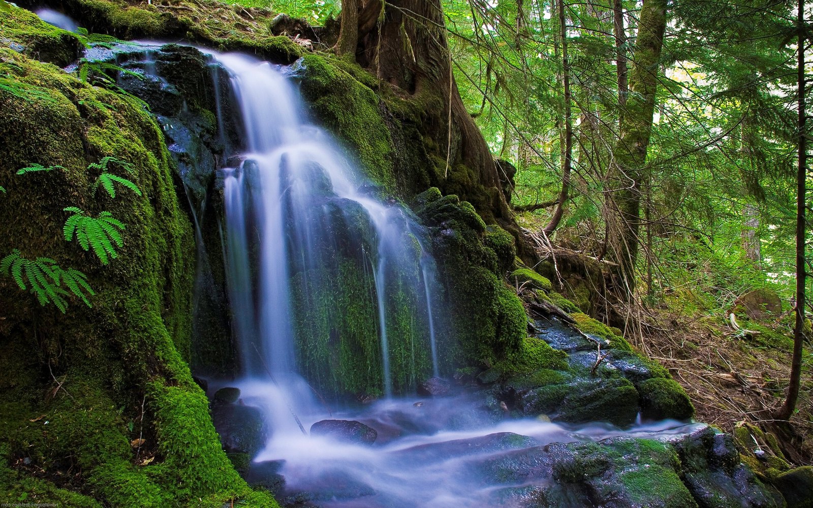 Old Beautiful Waterfall in the Green Summer Forest - 2560x1600