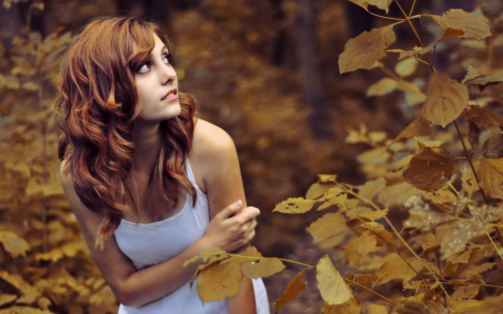 Pretty Girl in Autumn Forest - 1920x1200