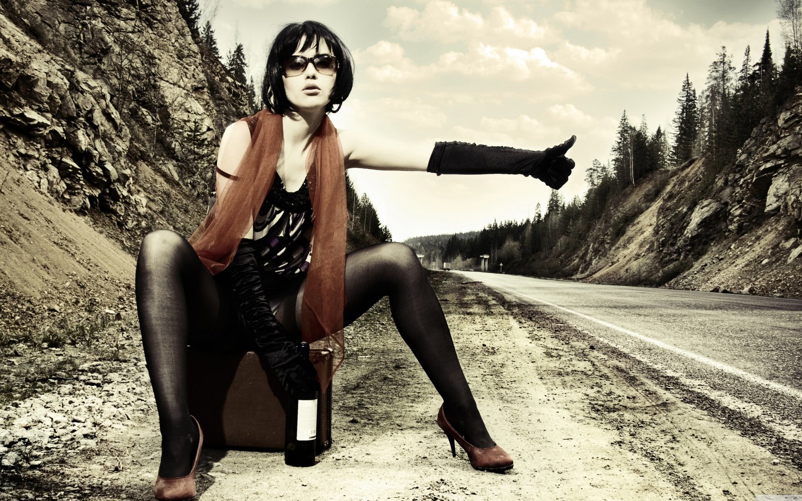 Pretty Sexy Hot Babe on the Road - 1920x1200