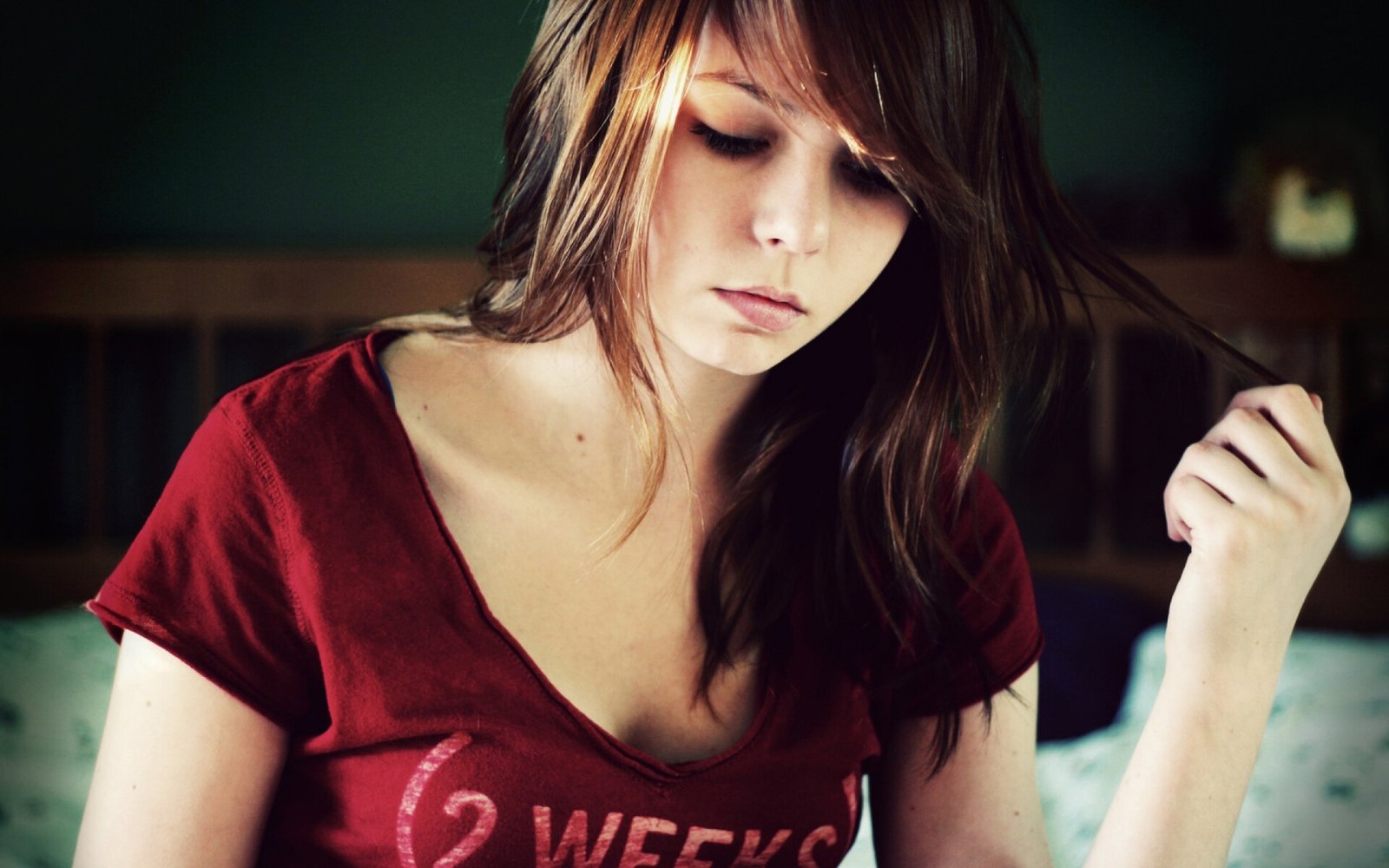 Pretty Young Teen Girl with Red Hair and Cute Sad Face - 1920x1200