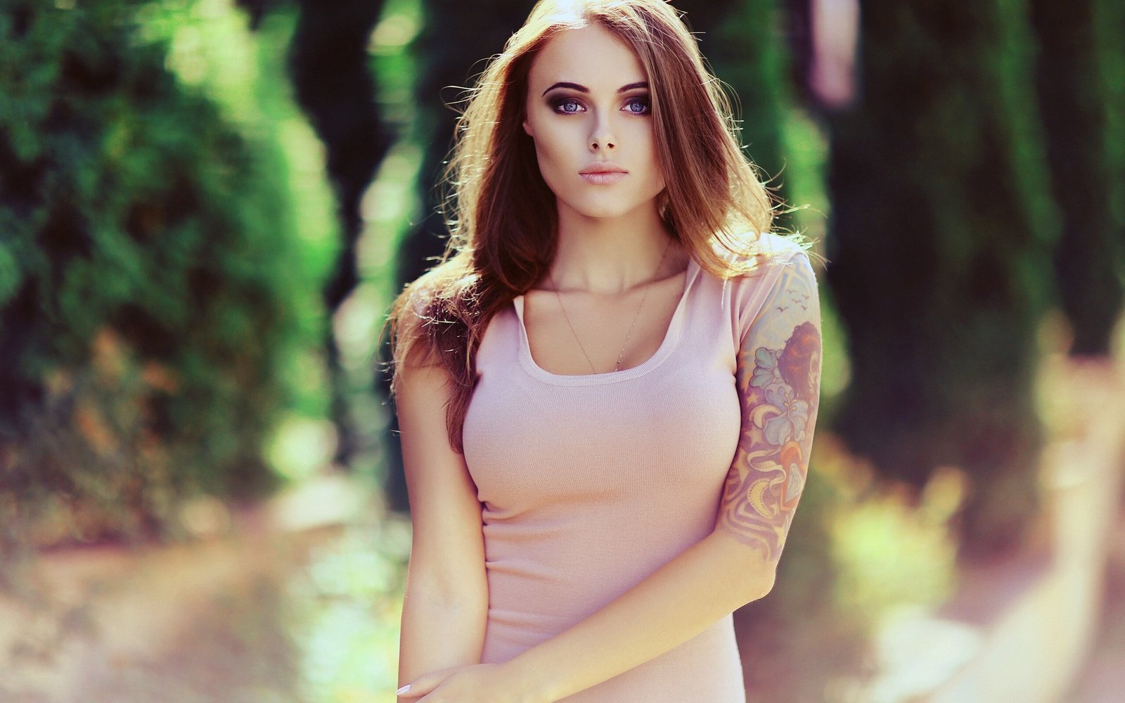 Redhead Girl with Perfect Body in the Garden - 2560x1600