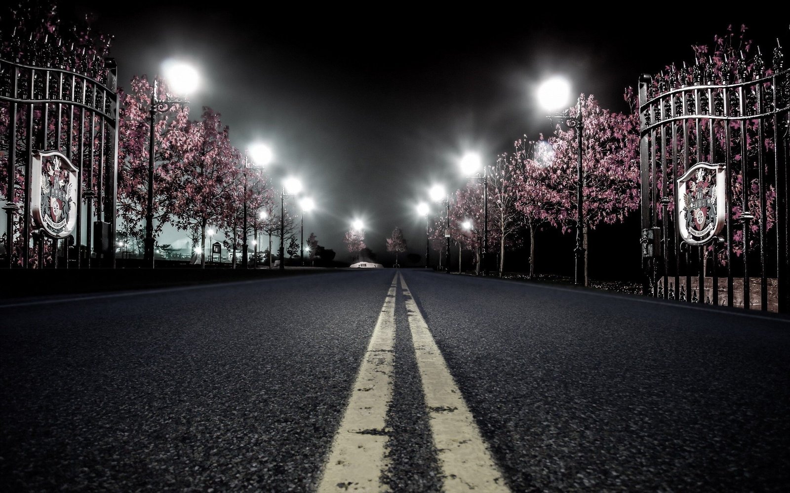 Road in Night City and Autumn Garden - 2560x1600
