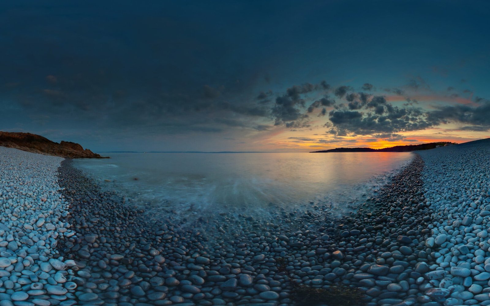 Rocks on the Beach and Beautiful Sunset - 1920x1200