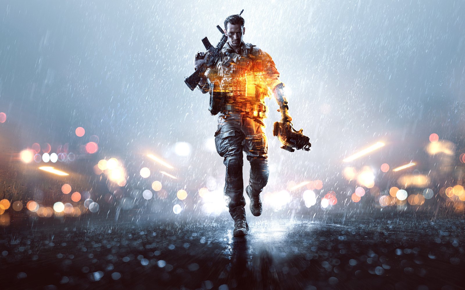 Soldier with Gun and Rain - 2880x1800