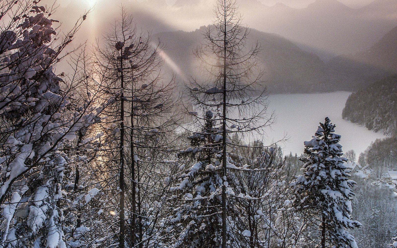 Sunrise in Winter Forest - 2560x1600