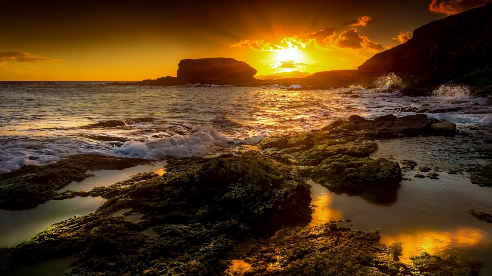 Sunset Beach Waves Water and Red Sun - 2560x1440