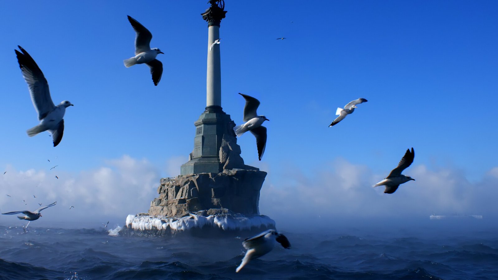 The Monument to the Scuttled Ships in Sevastopol and Gulls - 1920x1080 (1080p)