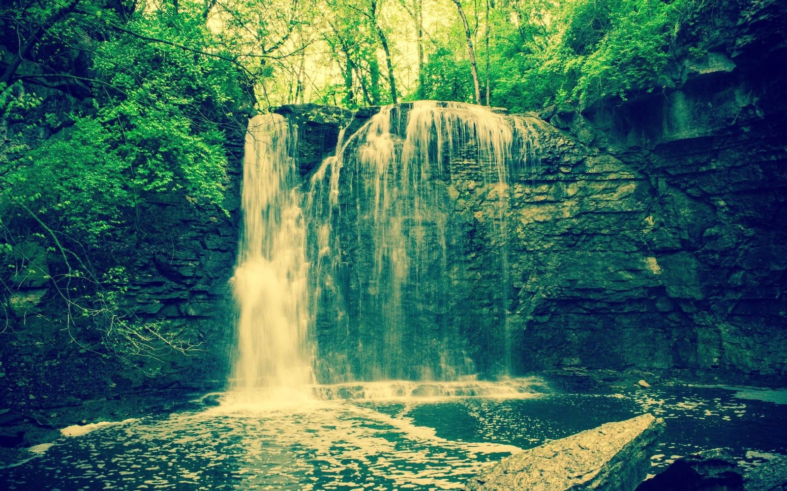 Waterfall in Old Green Forest - 2560x1600