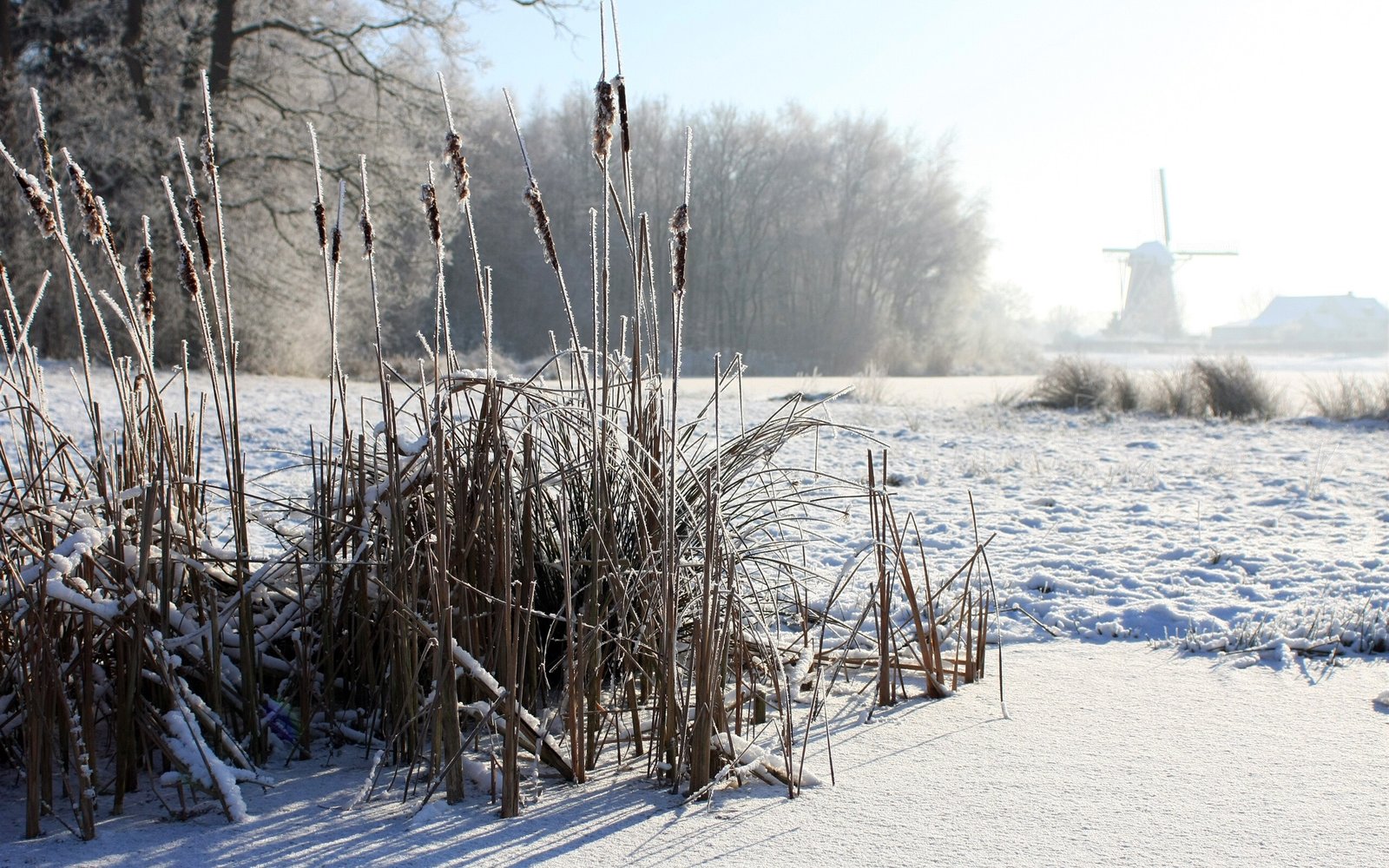 Winter Lake Reeds Frost and Snow - 2560x1600