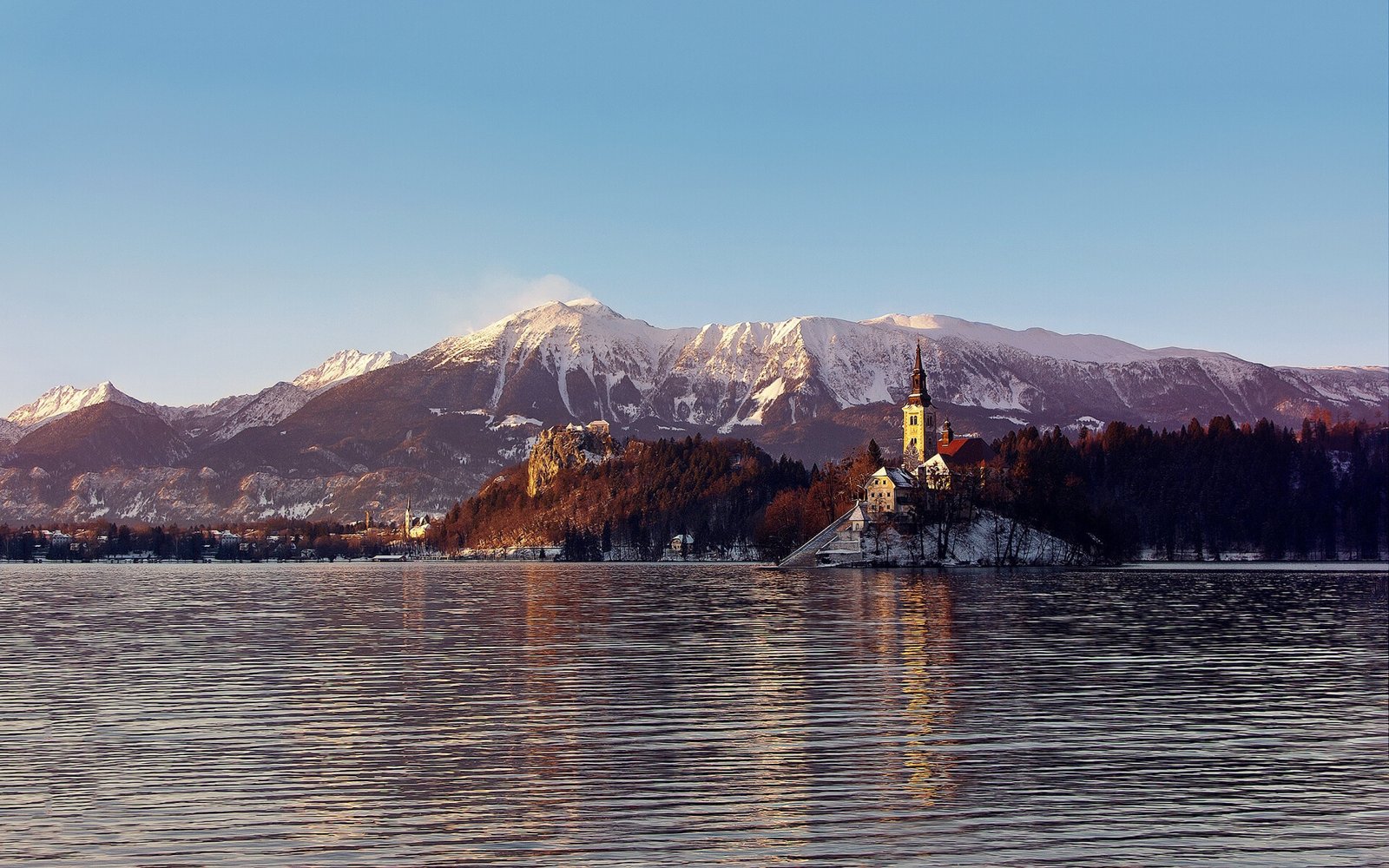 Winter Mountain Peaks and Big Lake - 1920x1200