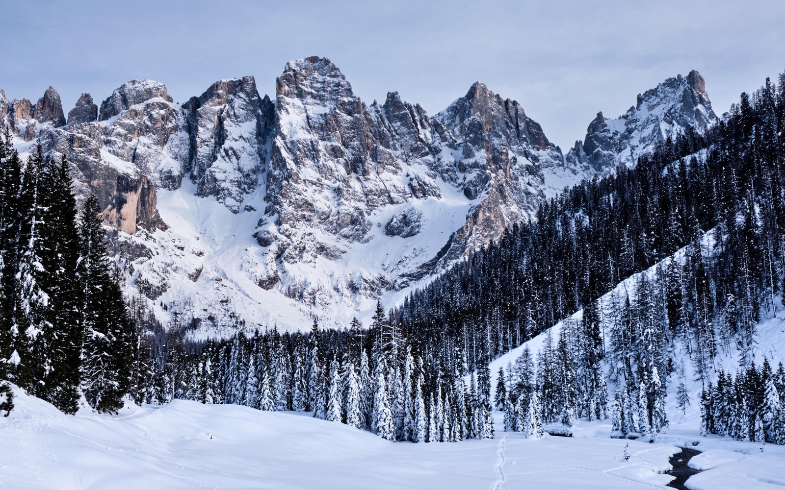 Wonderful Snowed Mountains and Pine Forest - 1920x1200