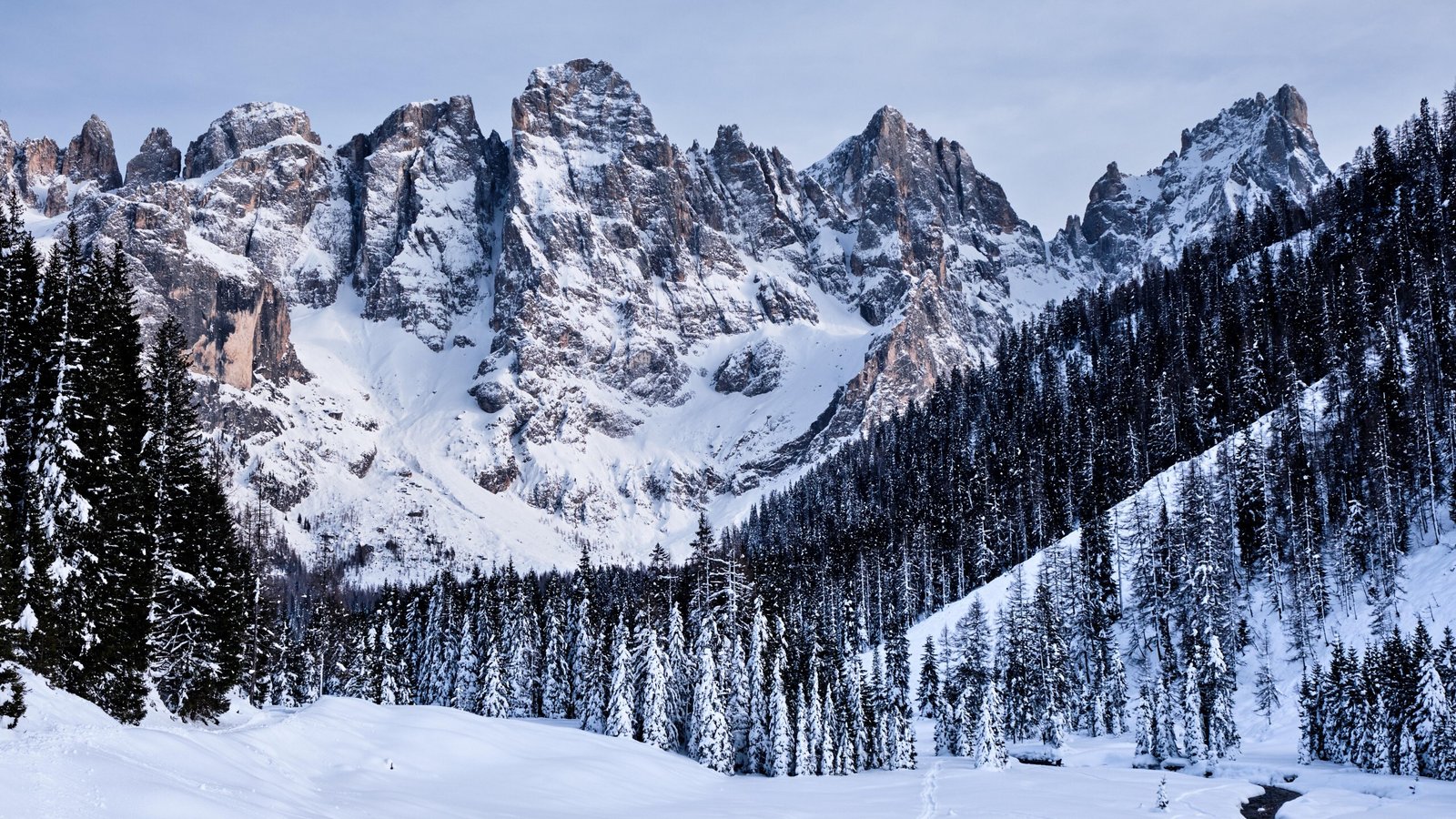 Wonderful Snowed Mountains and Pine Forest - 2560x1440
