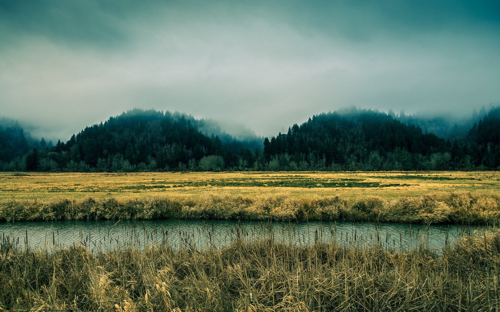 Wonderful Yellow Field Old Forest and Mountains - 1920x1200