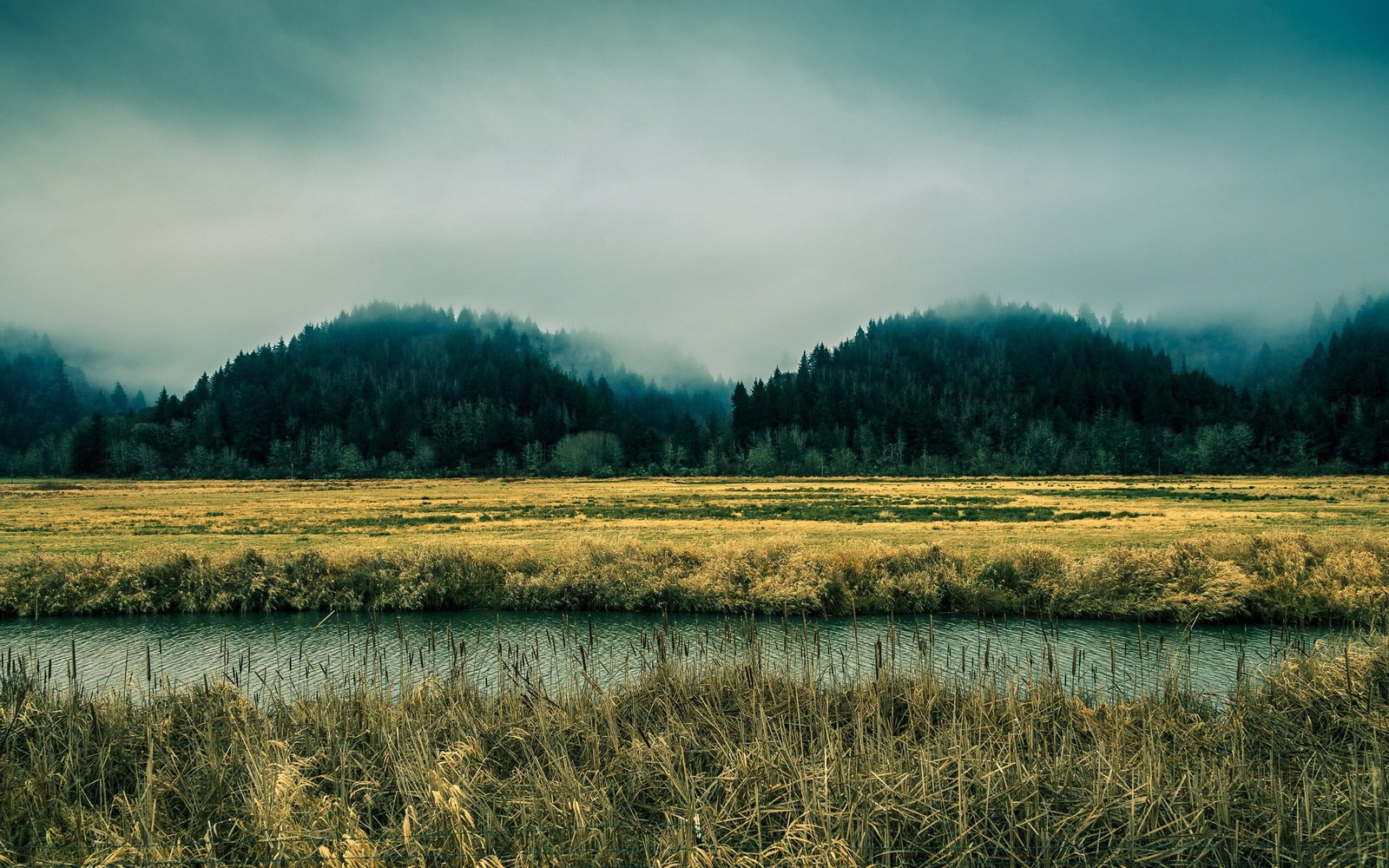 Wonderful Yellow Field Old Forest and Mountains - 2560x1600