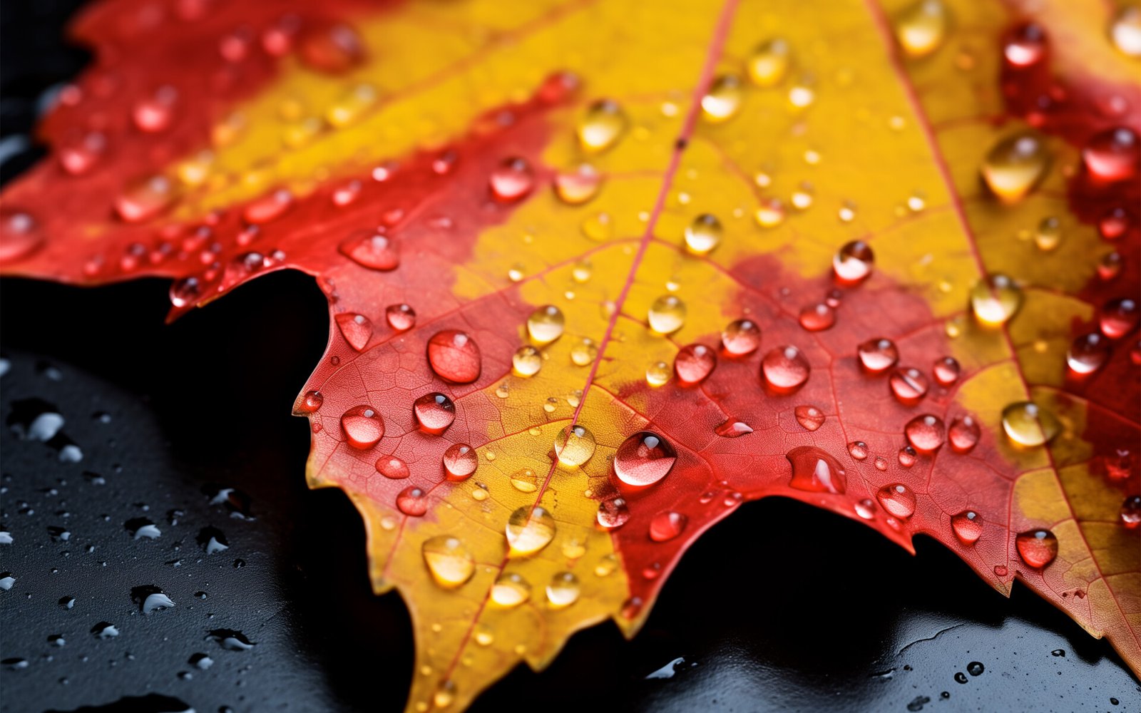Red and Yellow Leaf and Water Drops - 1920x1200